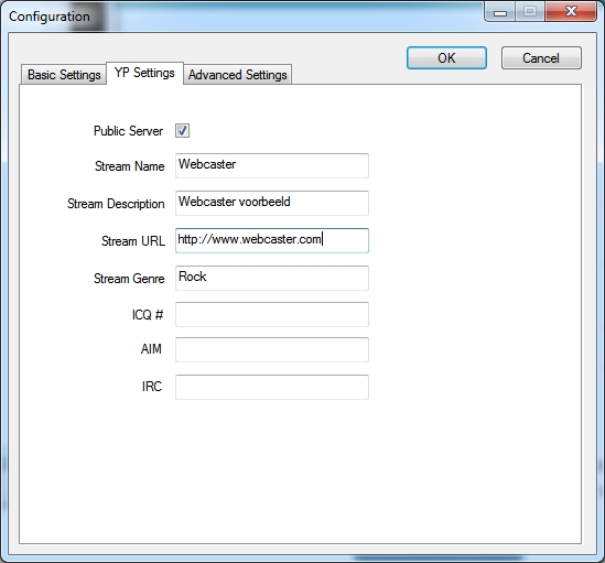 - Stream URL: Vul hier de domeinnaam in van uw station (indien aanwezig)